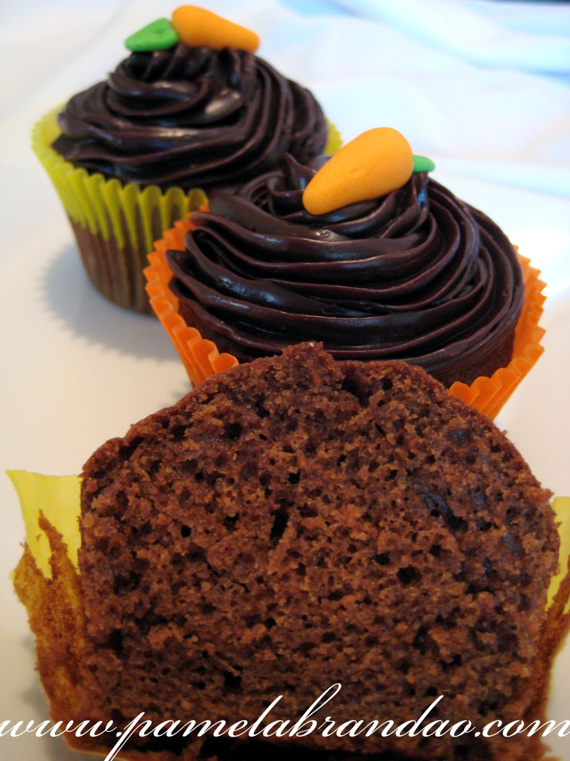 Pré-aqueça o forno a 180°C. Em uma tigela misture os ingredientes secos peneirados e a cenoura. Junte os ovos levemente batidos e o óleo. Misture bem e distribua em forminhas de cupcake untadas ou forradas com papel. Asse por aproximadamente 25 minutos ou até que o teste do palito saia limpo. Retire do forno e deixe esfriar sobre uma grelha.Cobertura: